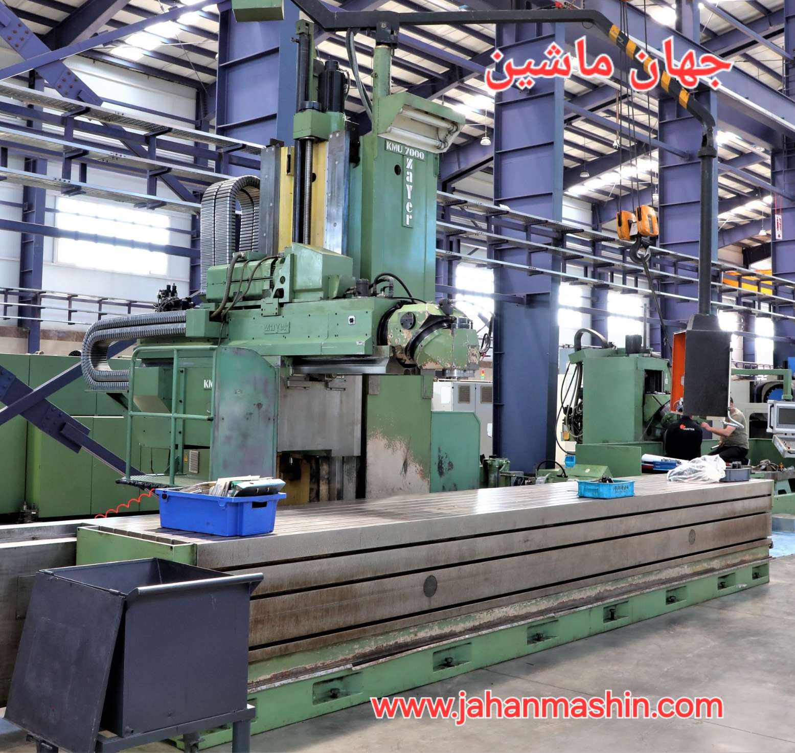 فرز CNC Zayer KMU 7000- سال ساخت: 1989- اورهال کامل: 2011- کشور سازنده: اسپانیا- کنترلر: هایدن هاین TNC620- -X:5300 -Y:1500 -Z:2000 ابعاد میز: 7000*1000- -SK50 دور اسپیندل: 1800 دور- توان کلی: 70 کیلووات- ابعاد: 8700*4700*4100- وزن: 30 تن (اطلاعات ثبت شده از سایت جهان ماشین میباشد(www.jahanmashin.com ))