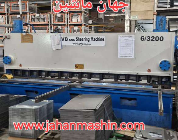 گیوتین طول ۳ متر و بیست سانت- برش تا ضخامت ۶ میلمتر(اطلاعات ثبت شده از سایت جهان ماشین میباشد(www.jahanmashin.com ))